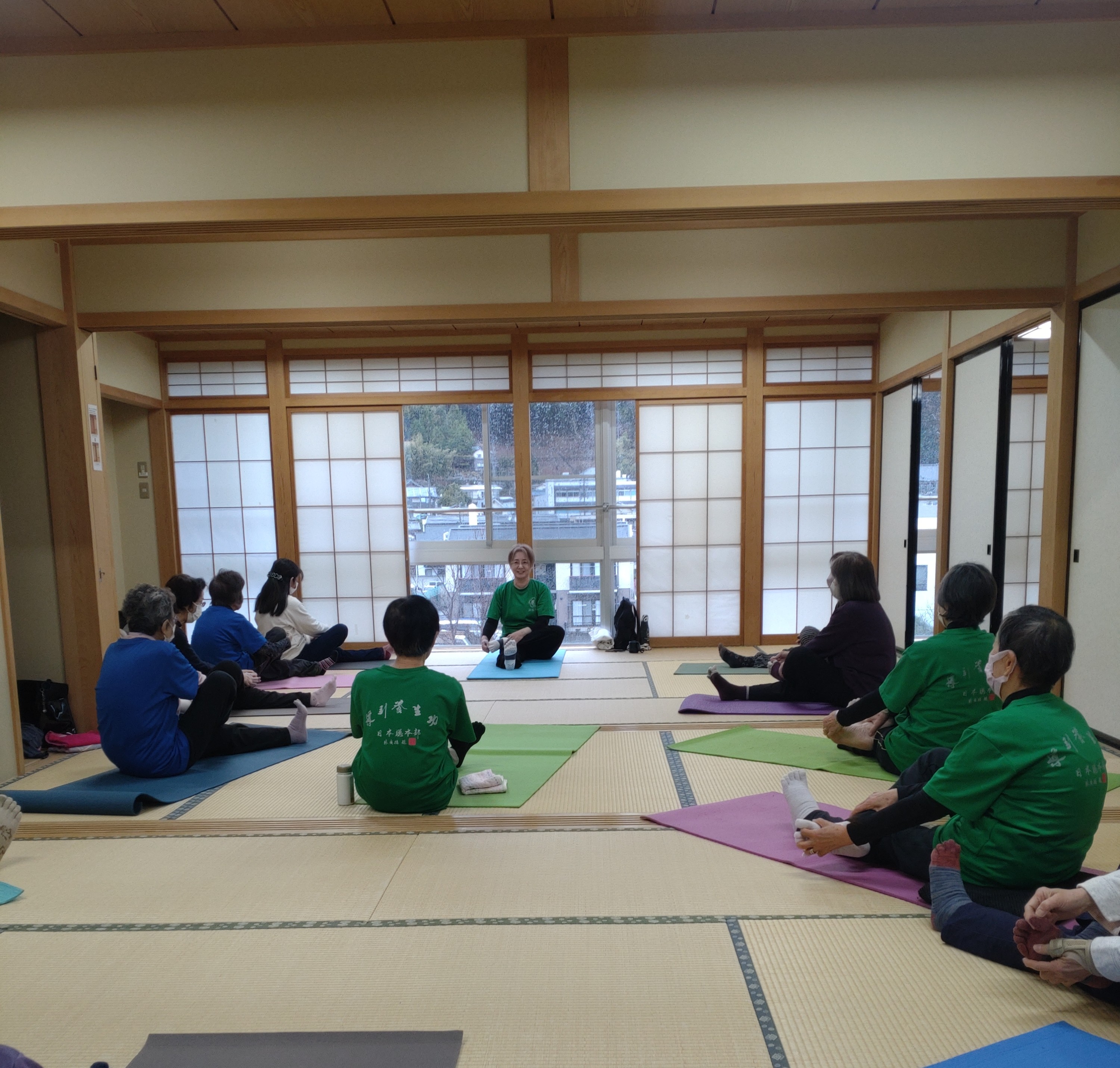 2018年4月からスタートした週1回の教室です。呼吸、柔軟性、筋力アップ、正しい姿勢など、日常の健康を目標に楽しく活動しています。