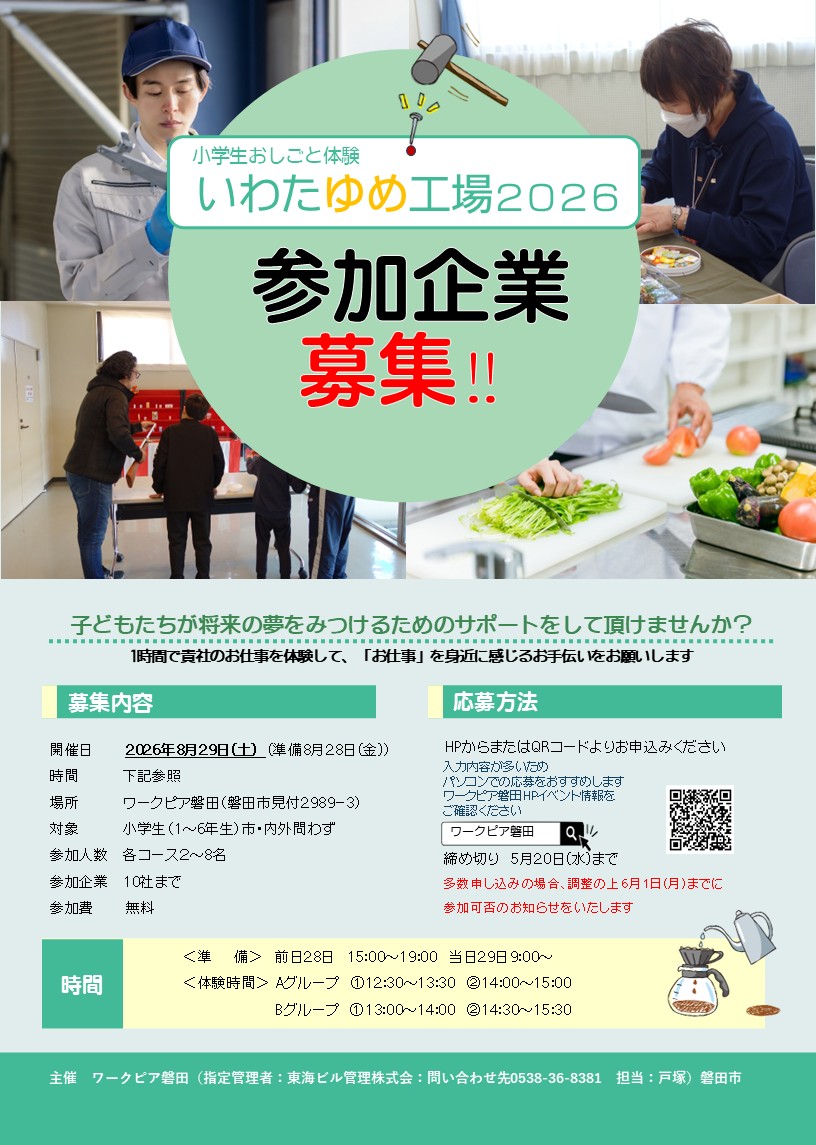 地元磐田のお仕事を小学生に体験していただきます。