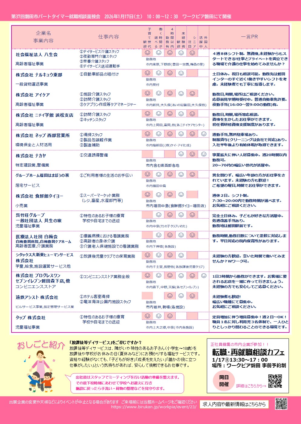 働きたい方と働く方を求める企業が直接話ができるチャンスです。