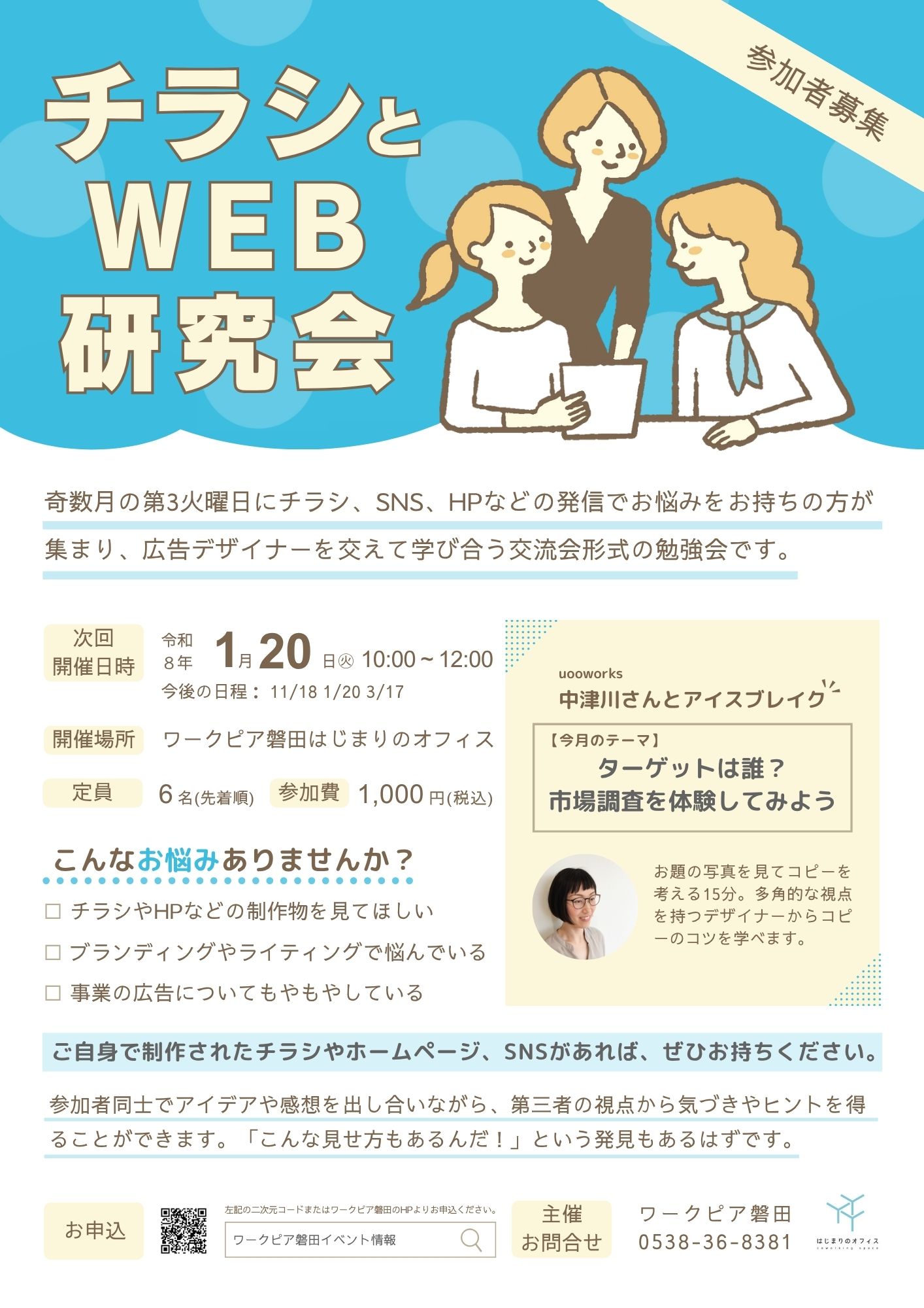 チラシやWEB広告やHPの作り方など、もやもやしている方向けの勉強会です。