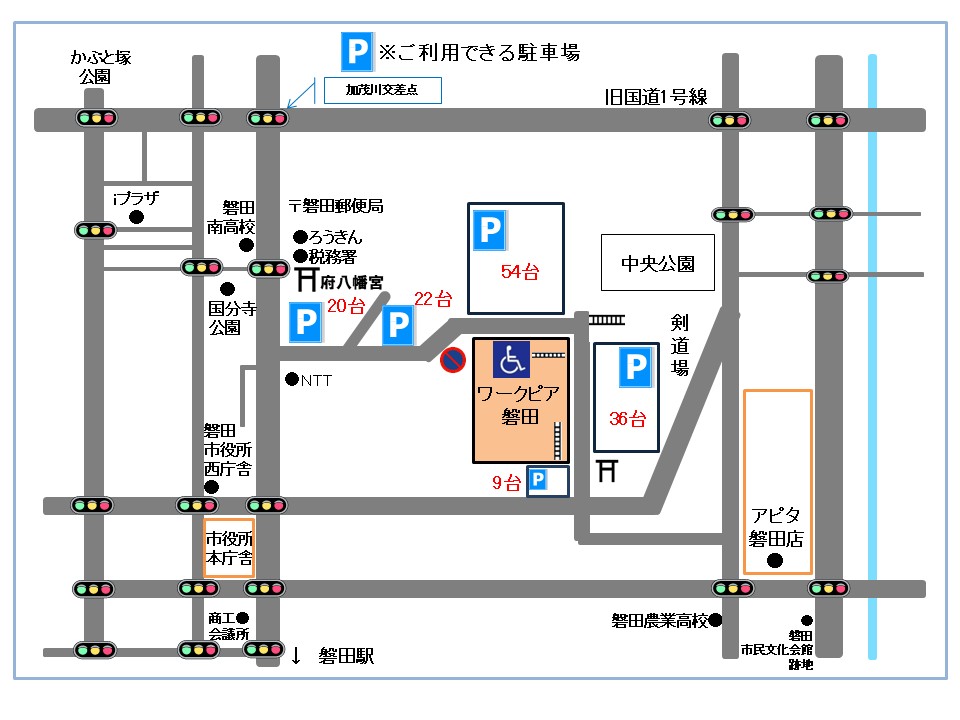 遠鉄バス見付営業所行き、二俣・山東行きも磐田市役所バス停下車徒歩5分です。 |