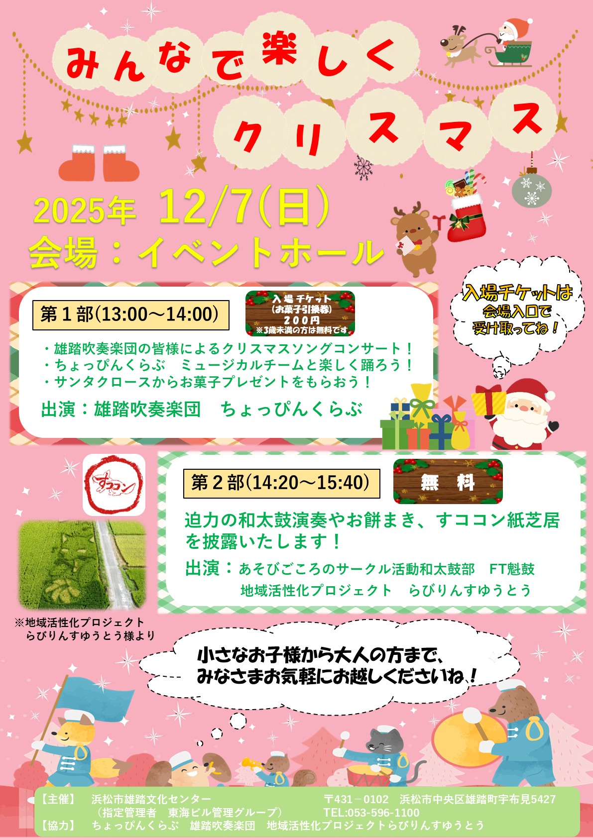 日頃より浜松市雄踏文化センターをご愛顧頂き誠にありがとうございます。