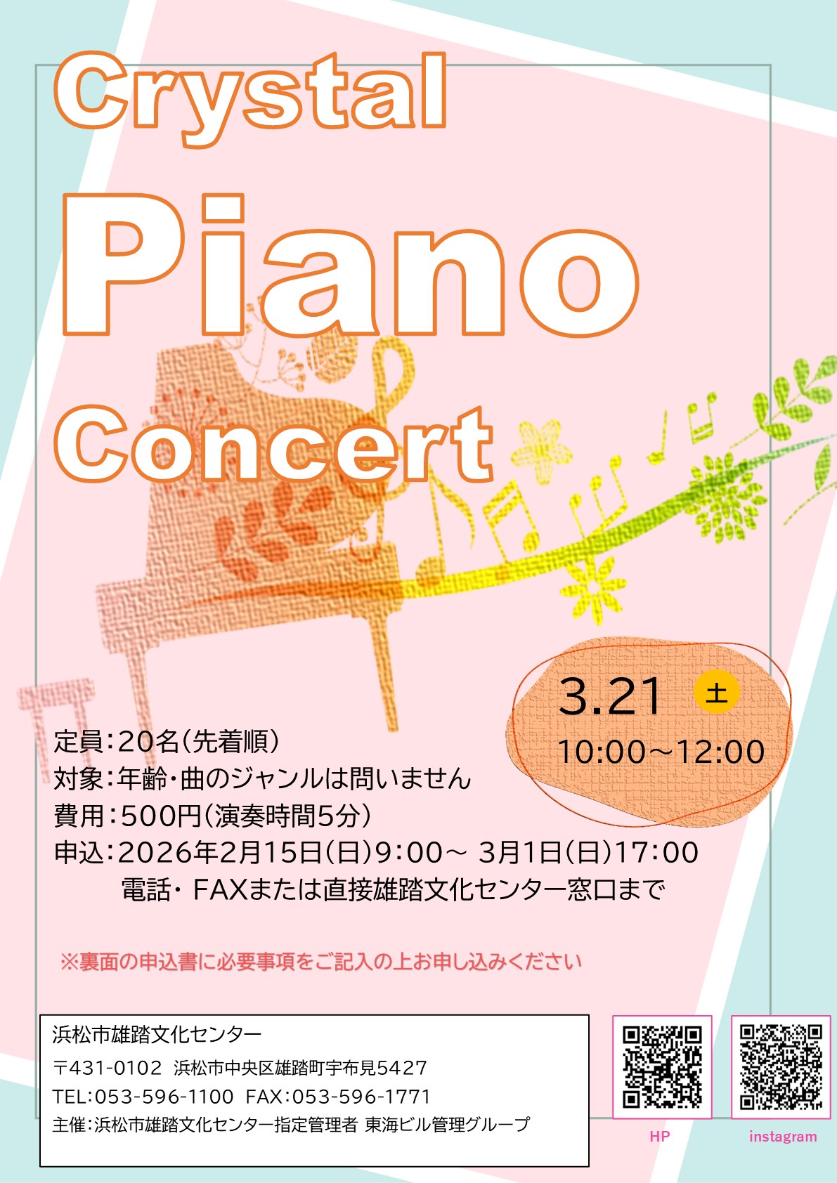 令和8年3月21日(土)10:00~12:00「クリスタルピアノコンサート」を開催いたします。