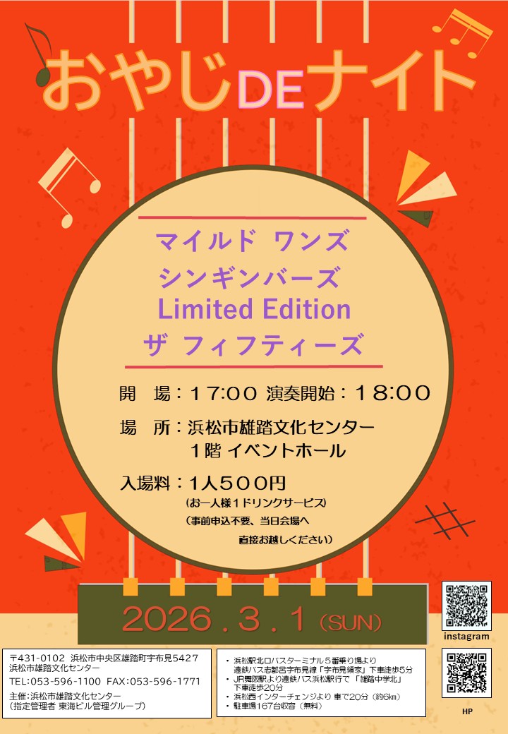 日頃より浜松市雄踏文化センターをご愛顧頂き誠にありがとうございます。